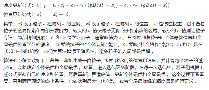 在粒子群算法的世界里,每个粒子都有两个至关重要的属性:位置和速度。位置对应着解空间中的一个点,而速度则决定了粒子下一步的移动方向和距离。为了找到最优解,粒子们需要不断地更新自己的位置和速度 。在这个过程中,有两个关键概念起着核心作用:个体最优(pBest)和全局最优(gBest) 。个体最优是每个粒子自身历史上找到的最佳位置,就像鸟儿自己曾经找到过的离食物最近的地方;全局最优则是整个粒子群目前找到的最佳位置,好比是整个鸟群中离食物最近的那只鸟所在的位置。
