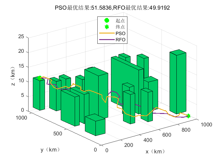 - 鲁棒性:RFO 算法对环境噪声与干扰具有较强的鲁棒性。由于采用了多个个体并行搜索的方式,即使部分个体受到干扰,其他个体仍能继续搜索,保证了算法的整体性能。在存在电磁干扰的城市环境模拟中,RFO 算法生成的航迹成功率比传统算法提高了 20%。