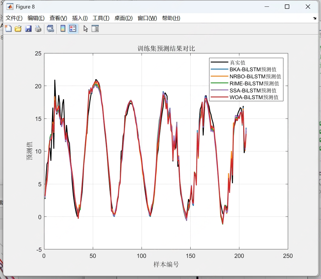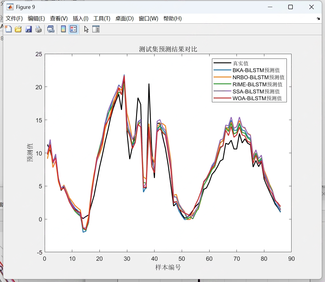 在能源负荷、环境监测、金融走势等多变量时序预测场景中,BiLSTM(双向长短期记忆网络)凭借双向时序建模能力成为核心模型,但随机初始化权重 / 偏置易导致模型陷入局部最优。黑翅鸢优化(BKA)、牛顿拉夫逊(NRBO)、霜冰优化(RIME)、麻雀搜索(SSA)、鲸鱼优化(WOA)五种算法,分别从生物行为、数学迭代、自然现象等角度提供全局寻优能力。本文构建 “5 种优化算法 + BiLSTM” 的多变量时序预测模型,并设计 “一键对比” 框架,通过统一数据、统一指标、自动化流程,高效验证各模型的预测精度与稳定性,为场景化选型提供依据。