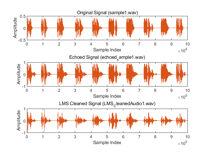 cleaned_audio = zeros(size(echoed_audio)); % Output cleaned signal