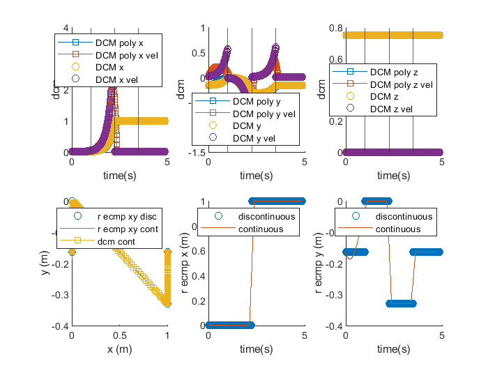 运动分歧分量(DCM,Divergent Component of Motion,又称 “捕捉点 Capture Point”)作为机器人动态平衡控制的经典理论,通过描述机器人质心(CoM)运动与支撑区域的关系,判断运动稳定性 —— 当 DCM 处于支撑多边形内部时,机器人保持平衡;超出则面临倾倒风险。然而,传统 DCM 仅适用于 2D 平面场景,存在两大局限:一是无法编码 3D 力信息,仅能处理平面内的重力与地面支撑力,难以应对 3D 环境中沿 z 轴方向的外力(如垂直方向的碰撞力、斜坡上的分力);二是轨迹生成能力不足,传统 DCM 轨迹生成器仅能输出离散的支撑点位置,无法生成连续的腿部受力轮廓,且在双支撑阶段(如机器人双脚同时着地)难以适配脚尖离地(toe-off)等精细动作,限制了机器人在复杂 3D 场景中的运动灵活性。