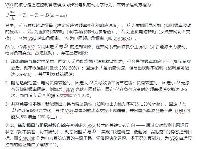 随着新能源(风电、光伏)在电力系统中占比持续提升,传统同步发电机的比例逐渐下降,导致电网转动惯量减小、阻尼特性减弱,易出现频率波动、电压暂降等稳定性问题。虚拟同步发电机(Virtual Synchronous Generator, VSG)技术通过模拟同步发电机的转子运动方程、励磁调节特性,使逆变器具备 “惯量支撑” 与 “阻尼调节” 能力,成为提升新能源并网系统稳定性的核心技术。