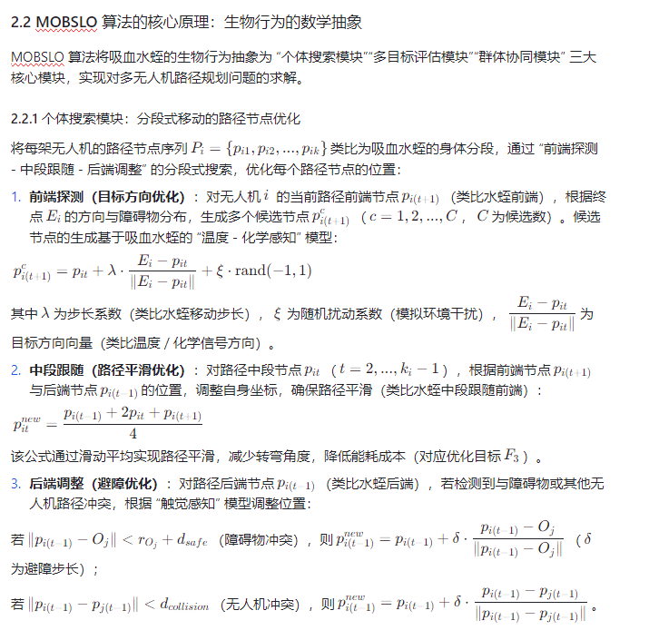 MOBSLO 算法源于吸血水蛭(Blood-Sucking Leech)的生物行为,其 “多目标感知、协同搜索、动态避障” 特性与多无人机路径规划需求高度契合。本节首先解析吸血水蛭的关键生物行为,再将其抽象为数学模型,构建 MOBSLO 算法的核心框架。
