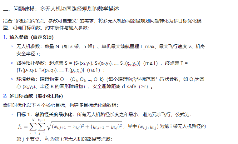 - 无人机数适配:根据输入的无人机数量 N,自动分配非支配解集中的路径数量(通常为 N 的 2-3 倍,确保每个无人机有多个候选路径),并通过 “协同因子” 动态调整群体协作强度(无人机数越多,协同因子权重越高,避免碰撞概率);