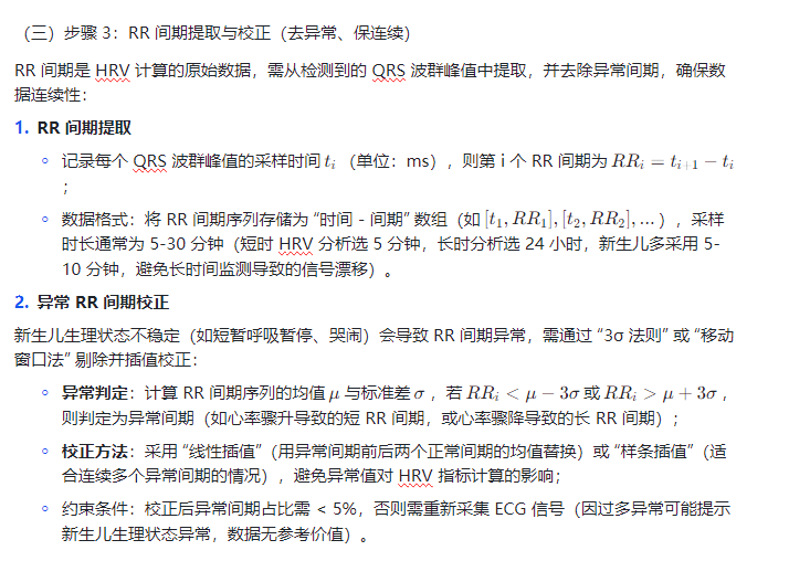 二、核心流程:基于新生儿 ECG 计算 HRV 的关键步骤