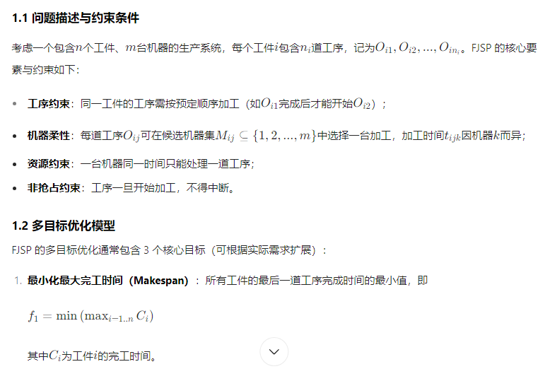 FJSP 的核心是在满足工序约束与机器柔性的前提下,优化多个相互冲突的目标函数,需先明确问题的约束条件与多目标优化模型。