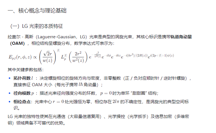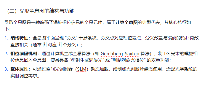 - 反射式干涉:通过分束镜使 LG 光束与叉形全息图的反射衍射光共路叠加,适用于紧凑型光学系统。