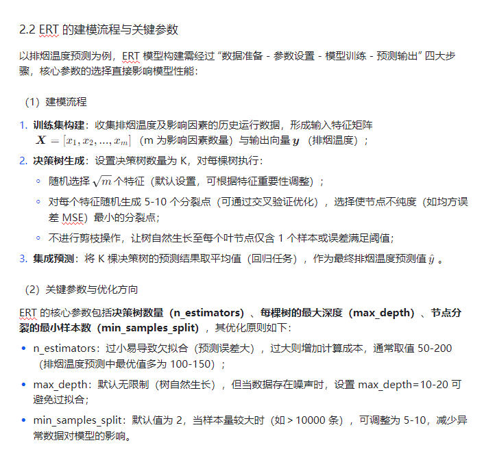极端随机树(Extreme Random Trees,ERT)作为集成学习算法的重要分支,通过构建多棵随机决策树并引入更强的随机性,具备非线性拟合能力强、抗干扰性好、训练与预测速度快的优势,为排烟温度精准、实时预测提供了理想解决方案。