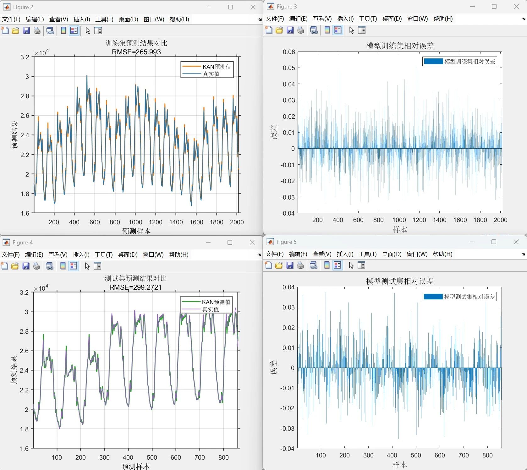 - 低过拟合风险:一方面,极简结构减少了模型的 “自由度”,降低了过度学习噪声的概率;另一方面,KAN 的激活函数组合(如单变量用 ReLU、双变量用正弦函数)具有天然的正则化效果,在小样本时序数据(如某地区月度降雨量预测)中表现尤为稳定。