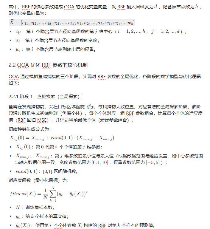 这些痛点使得传统 RBF 在复杂非线性回归场景中难以达到高精度预测要求,而 OOA 的全局寻优能力为解决 RBF 参数优化难题提供了有效思路。