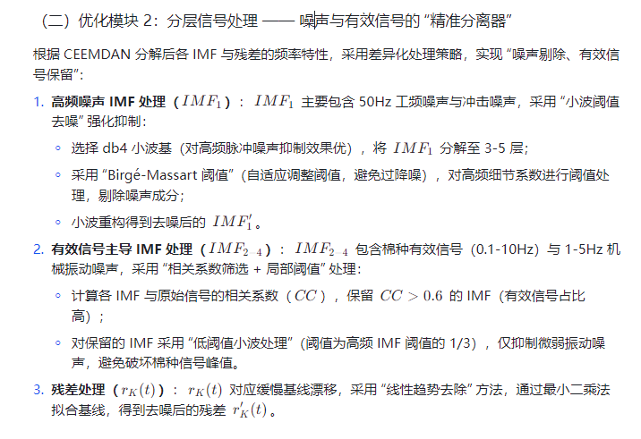 - EMD 去噪:分解过程中易出现 “模态混叠”(如将 50Hz 工频噪声与棉种信号混入同一本征模态函数 IMF),无法实现有效分离;