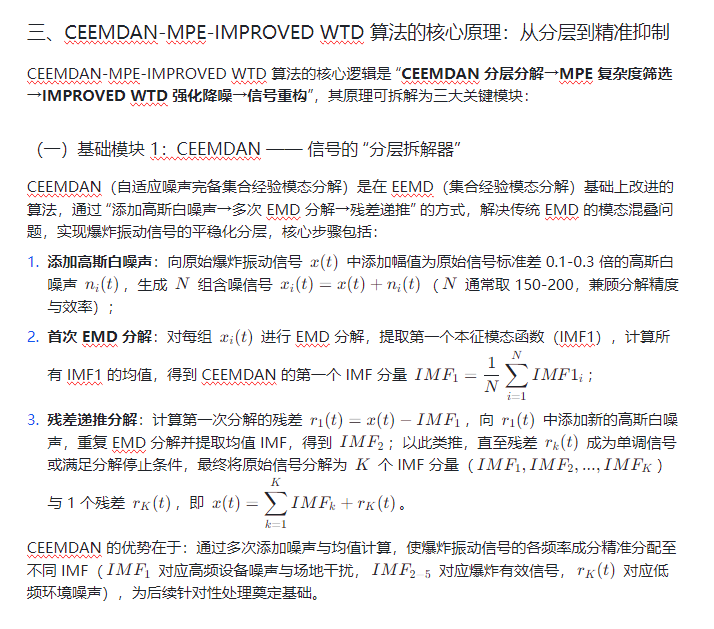 要理解 CEEMDAN-MPE-IMPROVED WTD 算法的价值,需先明确爆炸振动信号的特殊性与噪声抑制难点: