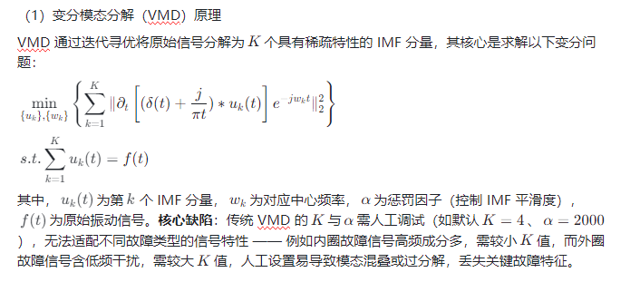 轴承故障诊断是工业设备健康管理的核心环节,传统诊断方法常受限于 “信号分解依赖经验、时序故障关联捕捉不完整” 的问题 —— 例如 VMD 参数人工设置易导致模态混叠,单一 LSTM 难以兼顾全局故障特征关联与局部时序演化规律,最终影响故障分类精度。本文提出 OCSSA-VMD-Transformer-LSTM 组合模型:通过改进型沙猫优化算法(OCSSA)自适应优化 VMD 的模态数