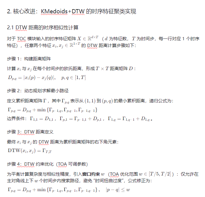 原 TOC 模块采用 K-means++ 与欧氏距离进行特征聚类,在时序数据场景下存在两大缺陷: