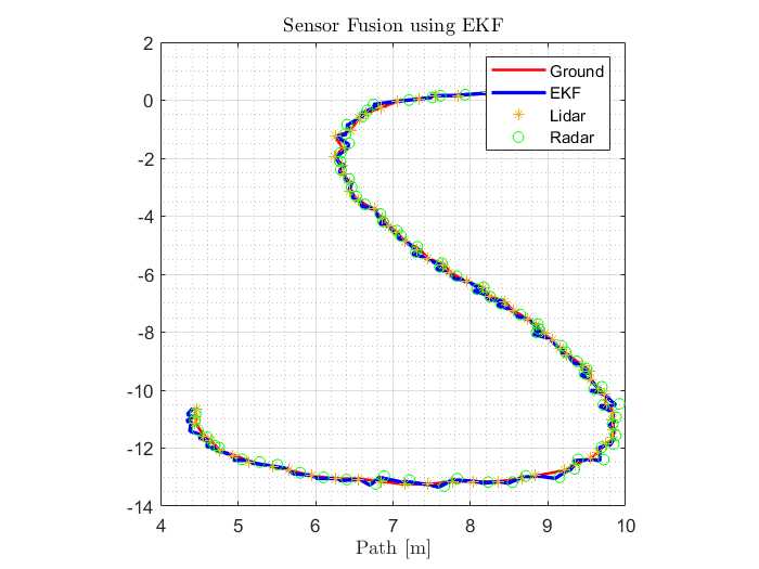 这种 “单一传感器短板” 催生了传感器融合技术 —— 通过整合不同传感器的互补优势,实现 “1+1>2” 的目标状态估计效果。而扩展卡尔曼滤波(EKF) 作为处理非线性系统状态估计的经典算法,恰好适配雷达 - 激光雷达融合场景:两类传感器的测量模型(如雷达的距离 - 角度测量、激光雷达的直角坐标测量)与目标运动模型(如匀速直线运动、匀加速运动)均存在非线性关系,EKF 通过对非线性模型的局部线性化处理,能高效融合两类传感器数据,实时估计目标的二维位置(x,y)与速度(vx,vy),同时抑制测量噪声干扰,提升状态估计精度。