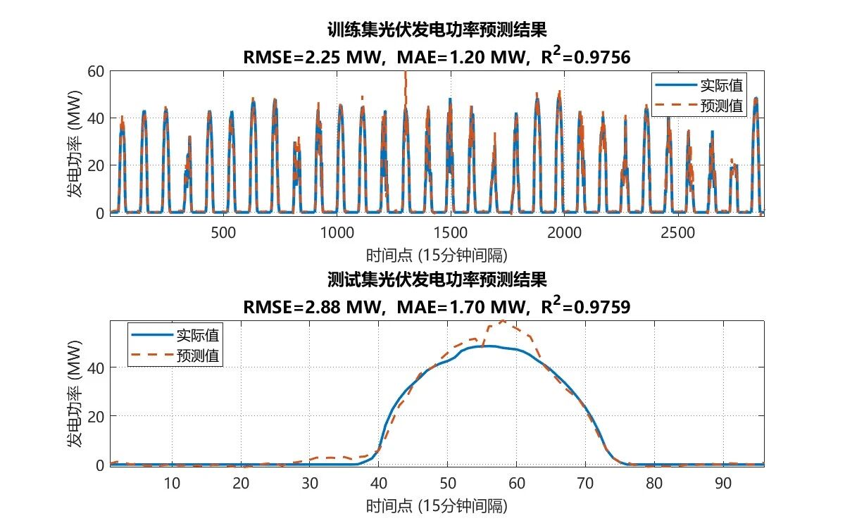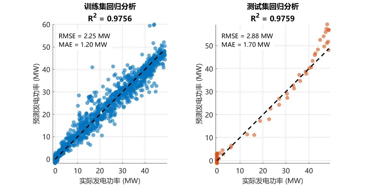 训练集 - 均方根误差: 2.246 兆瓦, 平均绝对误差: 1.200 兆瓦, 决定系数: 0.9756