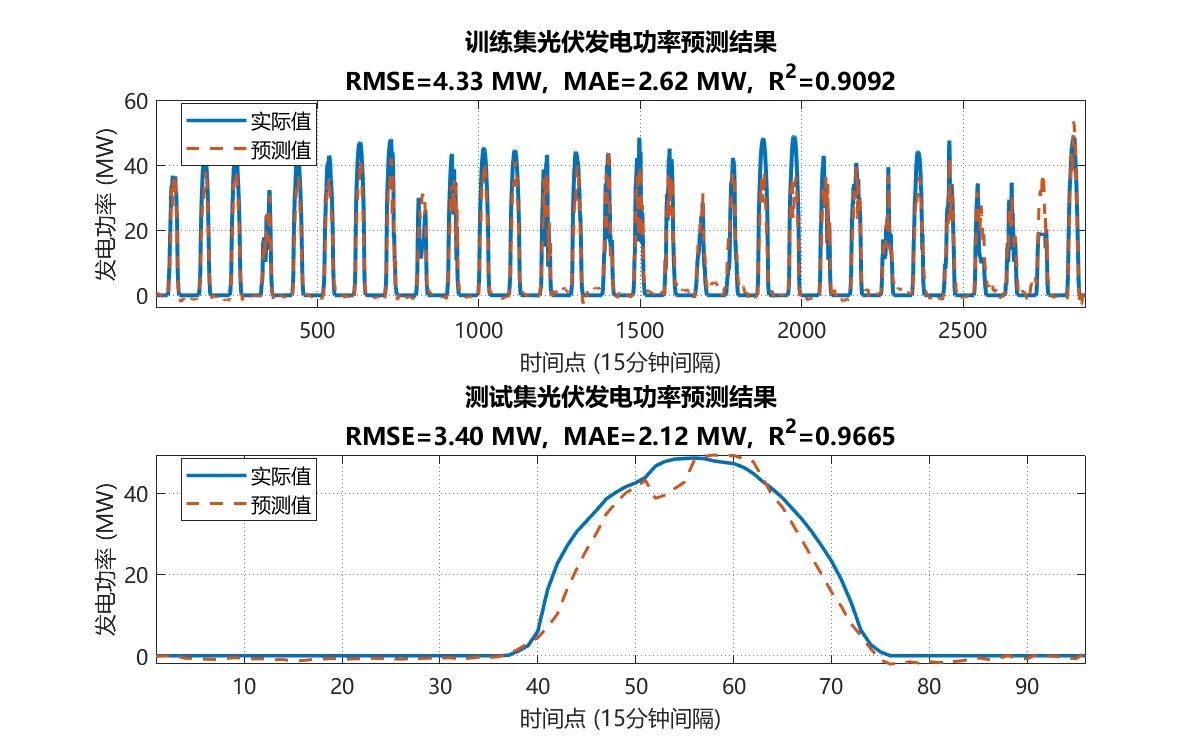 测试集 - 均方根误差: 3.395 兆瓦, 平均绝对误差: 2.117 兆瓦, 决定系数: 0.9665