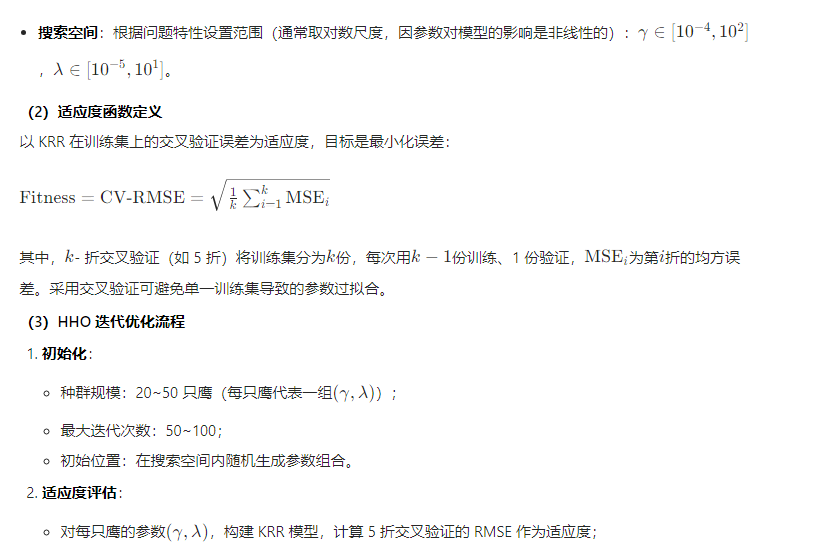 基于哈里斯鹰优化(HHO)与核岭回归(KRR)的多输入回归预测模型(HHO-KRR),是通过 HHO 算法优化 KRR 的核参数与正则化系数,增强模型对多输入变量非线性关系的拟合能力,尤其适用于工业过程参数预测、环境因子关联分析等多变量耦合场景。以下是该模型的技术框架、实现流程及核心优势: