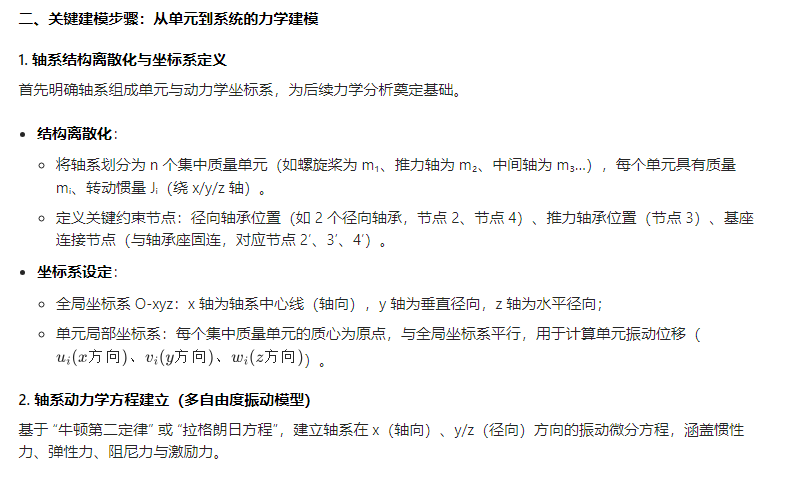 “螺旋桨轴系动力学模型” 需整合轴系振动、多类型轴承约束与基座载荷传递,核心是通过建立 “轴系刚体 + 弹性振动模型”,结合轴承力与基座反力的力学平衡,实现轴系动态响应与约束力的精准计算。