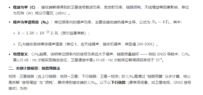 :接收端解调得到的卫星信号载波功率,受发射功率、链路损耗、天线增益等因素影响,单位为瓦特(W)或分贝毫瓦(dBm)。