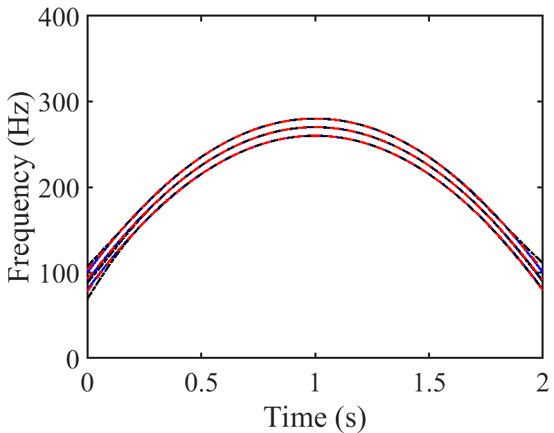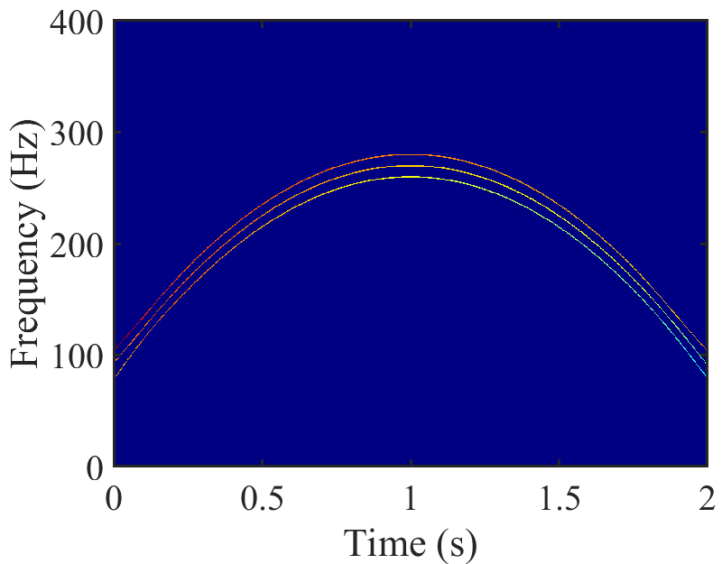 :ACMD 算法会自适应地搜索并估计每个 Chirp 模态的瞬时频率(Instantaneous Frequency, IF)和瞬时幅值(Instantaneous Amplitude, IA)。这个过程通常通过迭代优化(如最小化重构误差)来实现。