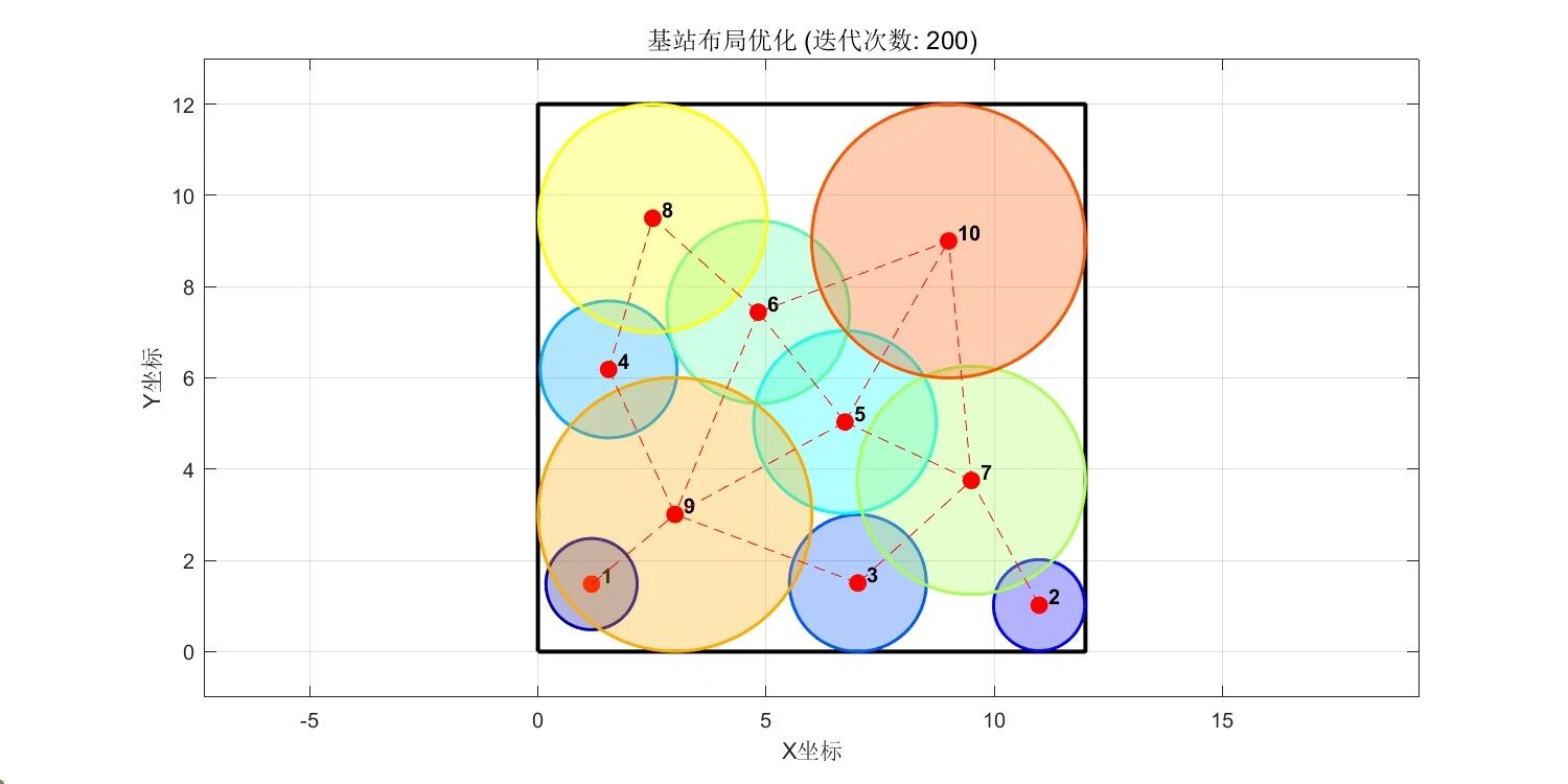 将灰狼优化算法(GWO)应用于手机基站布局优化,可有效解决传统布局方法(如贪心算法、穷举法)在复杂场景下难以找到全局最优解的问题,实现基站覆盖、容量、成本的多目标优化。以下是完整的技术方案、实现步骤和代码示例: