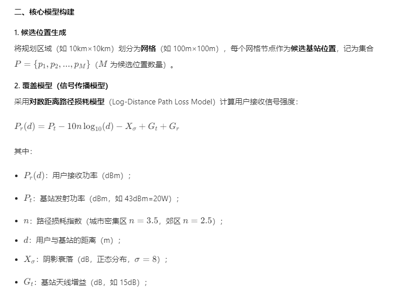 :基站需部署在候选位置集合内(如规划区域内的可用点位)。