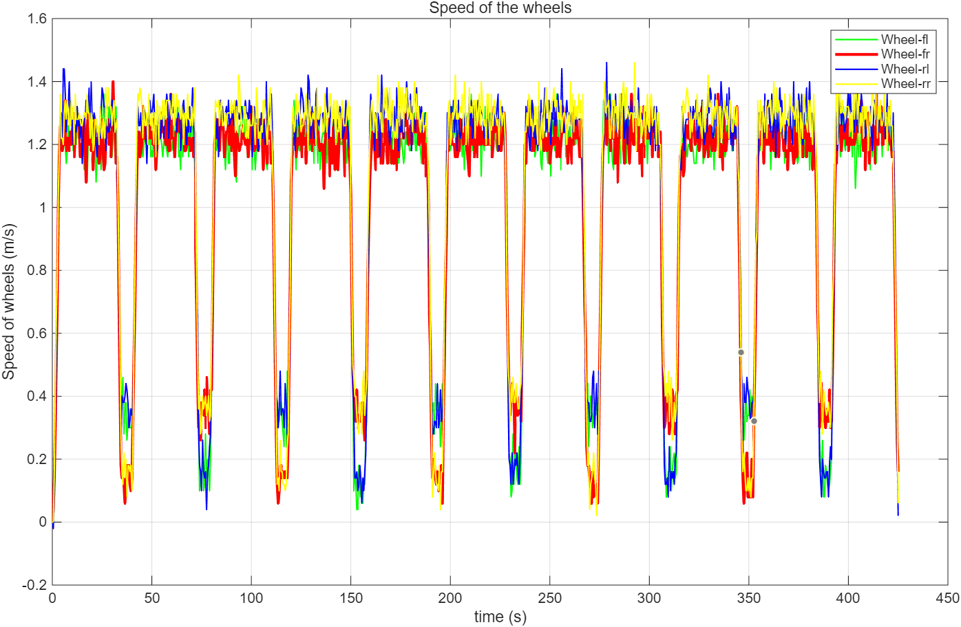 :读取左右轮的脉冲数,计算轮速和车辆的瞬时速度及转向角。