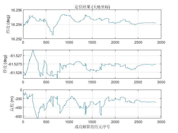 - **结果可视化**: 绘制定位结果(纬度、经度、高程)和 DOP 值的时序图。