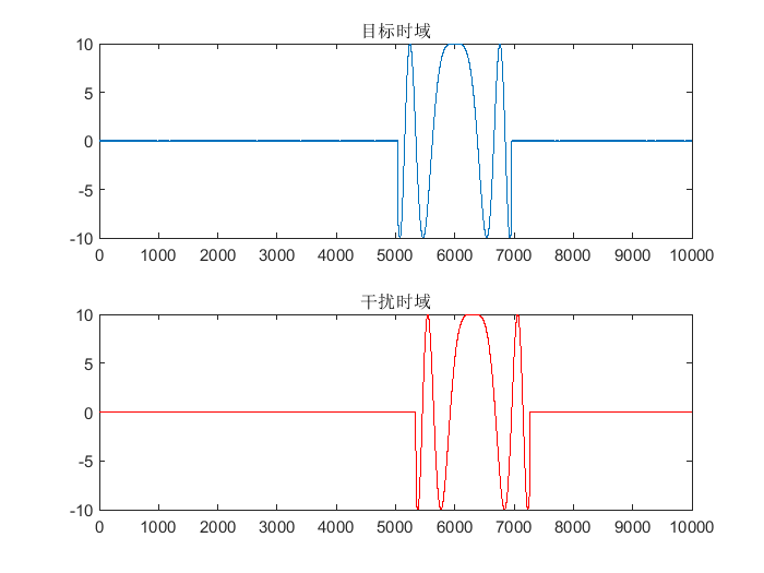 构建雷达信号模型:包含目标回波(线性调频信号)、相干干扰(基于目标信号复制),支持设置信噪比(SNR)、干噪比(INR)。