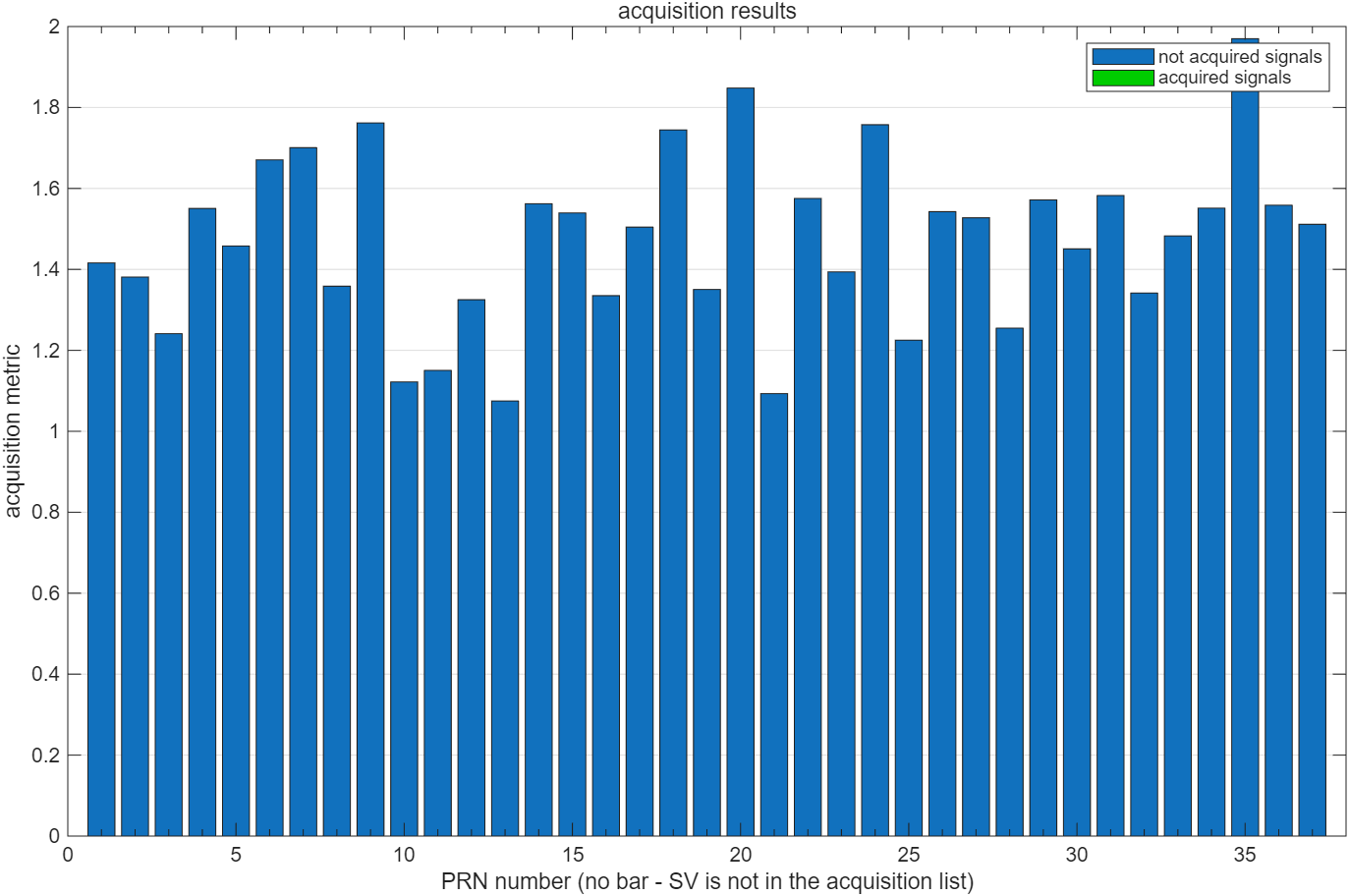 xlabel(hAxes, 'PRN number (no bar - SV is not in the acquisition list)');