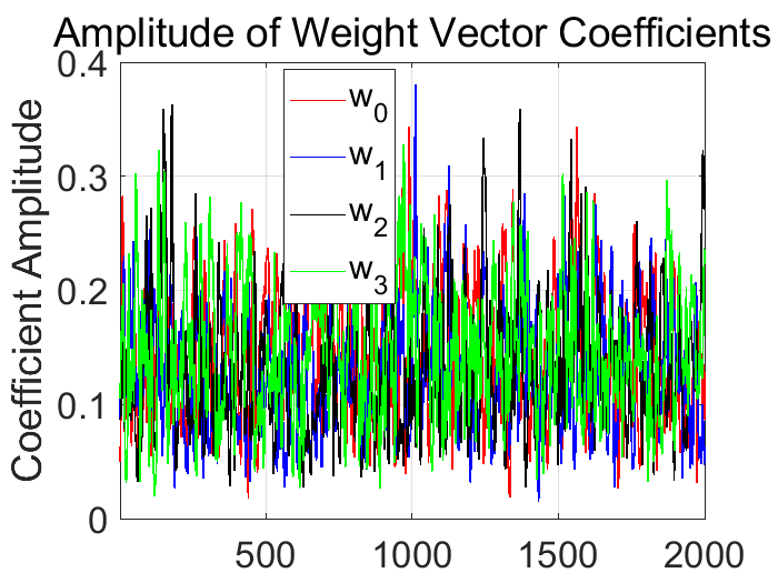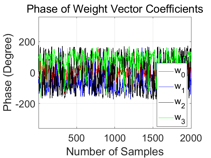 :仅绘制前 4 个阵元的权值幅度 / 相位,10 阵元的其余 6 个未展示,无法全面观察权值收敛特性。