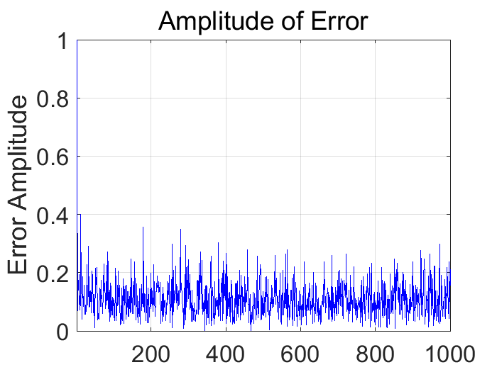 alpha = QPSK_TxSig(:,n)-Rx_Sig(:,n).'*w,其中QPSK_TxSig(:,n)索引错误(应为行向量QPSK_TxSig(n)),且alpha与已定义的误差e(n)完全等价,导致计算冗余且可能报错。 - 权值收敛曲线不完整