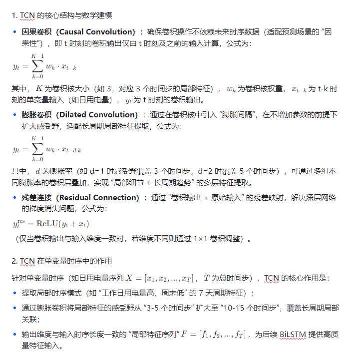 二、核心原理:TCN-BiLSTM 的融合架构与单变量时序建模逻辑