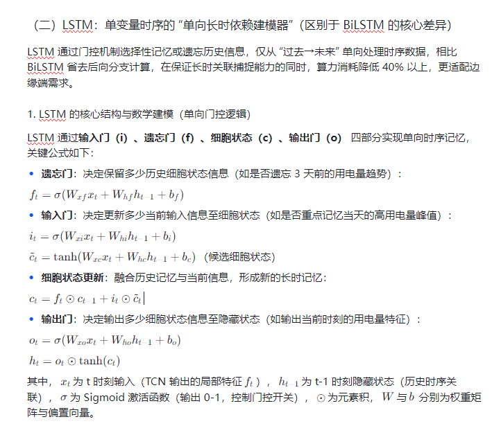 - 双向建模的冗余性:TCN-BiLSTM 虽精度高,但双向计算需额外消耗 30%-50% 算力,在边缘设备(如嵌入式传感器、小型网关)上实时性不足,且部分场景(如实时温度预警)无需后向信息即可满足需求。