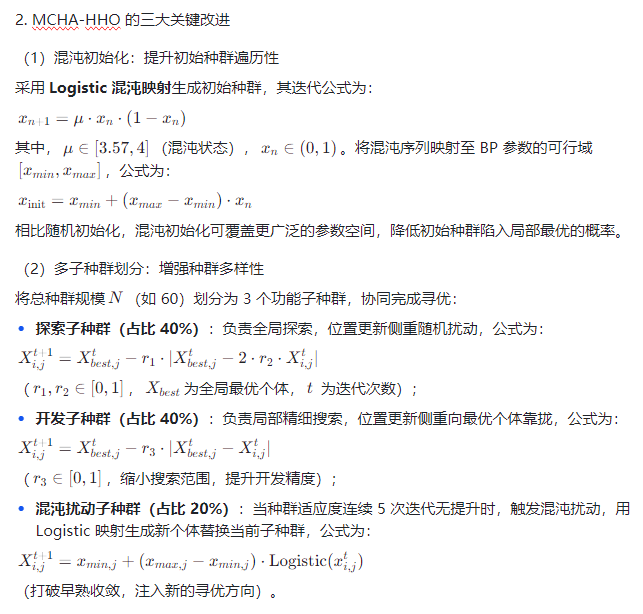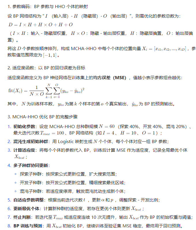 二、核心原理:MCHA-HHO 算法与 BP 神经网络的协同优化逻辑