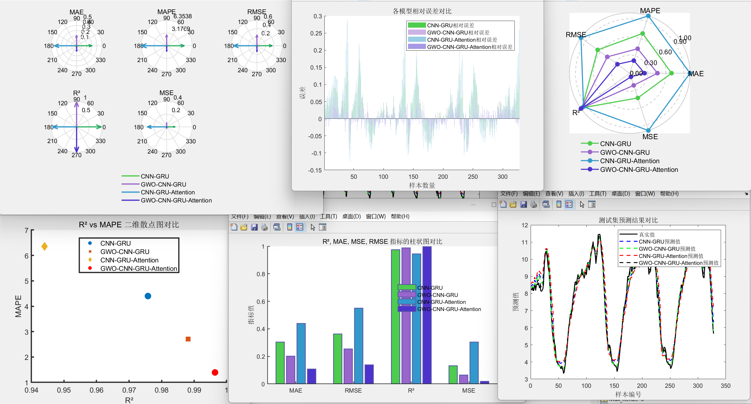 灰狼算法(Grey Wolf Optimizer, GWO)作为群体智能优化算法,通过模拟灰狼种群 “包围 - 追捕 - 攻击” 的狩猎行为,可高效搜索全局最优超参数组合,解决手动调参的低效问题。本文以航空发动机多传感器时序数据(NASA CMAPSS 数据集)为对象,构建四组对比模型(基础 CNN-GRU-Attention、GWO 优化版、无 CNN 版、无 Attention 版),通过 “优化效果对比 + 组件作用验证”,完整拆解 GWO-CNN-GRU-Attention 系列模型的多变量时序预测逻辑,为工业场景提供 “优化方法 + 模型选型” 的双重参考。