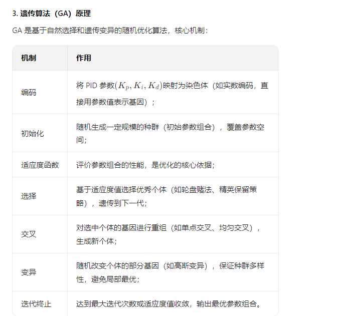 :作为全局优化算法,模拟生物进化过程,在 PID 参数空间中高效搜索最优组合,避免局部最优,适配复杂电路系统的参数耦合特性。