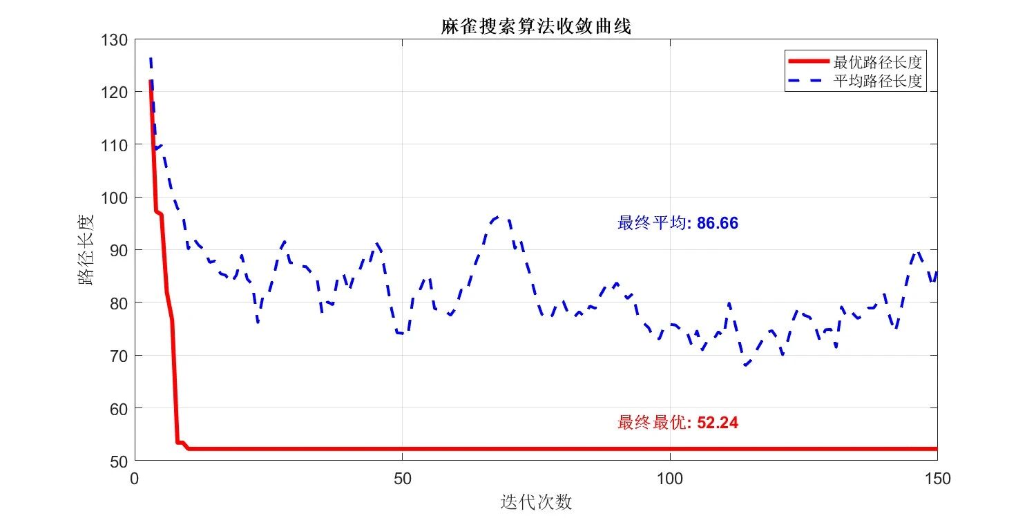 :规划路径坐标、路径长度、搜索时间、迭代收敛曲线、地图路径可视化。