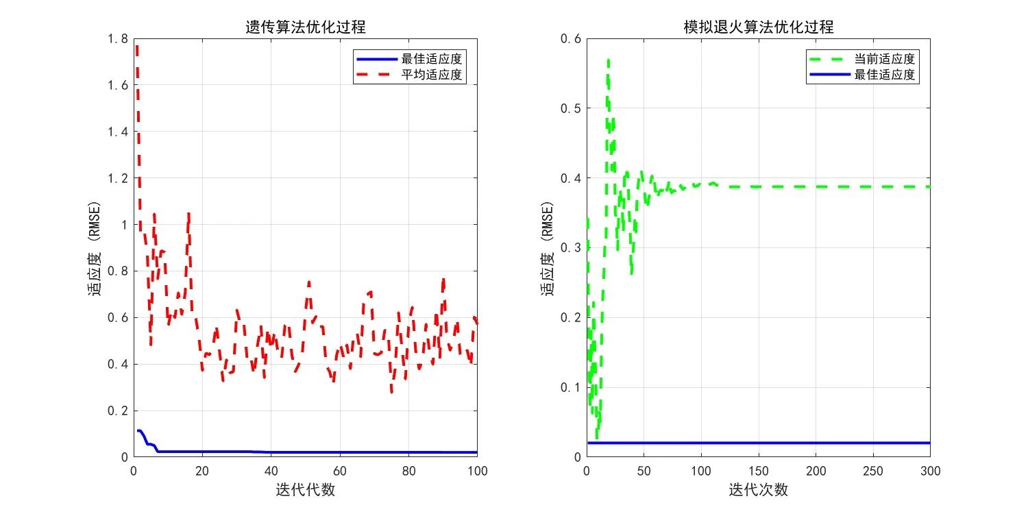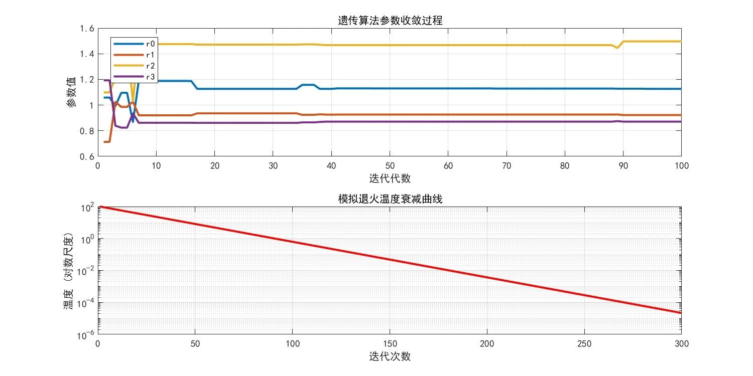 - 阶段 2(低温期):以 SA 为主,GA 为辅 —— 减少 GA 的交叉变异概率,通过 SA 的缓慢降温,对 GA 筛选出的较优参数进行局部微调,进一步降低误差。