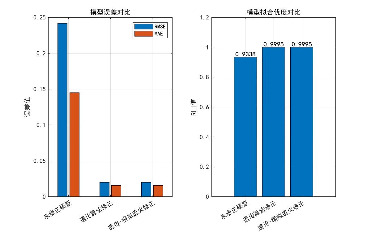 遗传算法相比未修正模型 - RMSE降低: 91.64%, R²提高: 6.57%