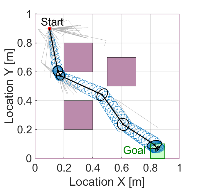 环境不确定性:障碍物位置 / 形状存在探测噪声(如传感器测量误差,服从高斯分布)、部分区域未探测(未知障碍物);