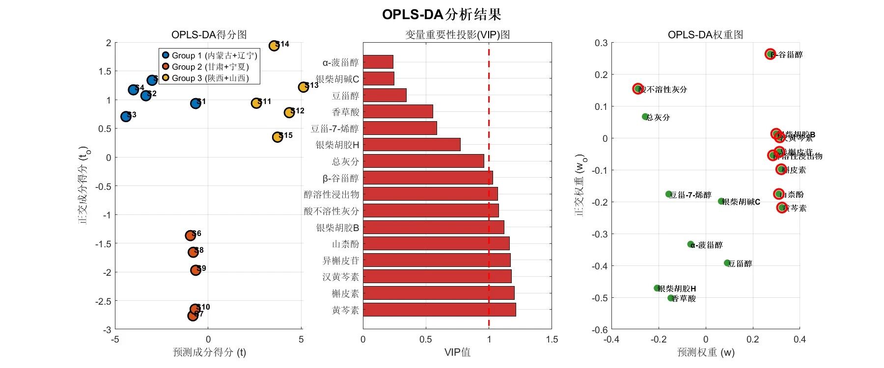 • 第三步:通过 OPLS-DA 增强组间差异,筛选潜在质量标志物(Q-markers);