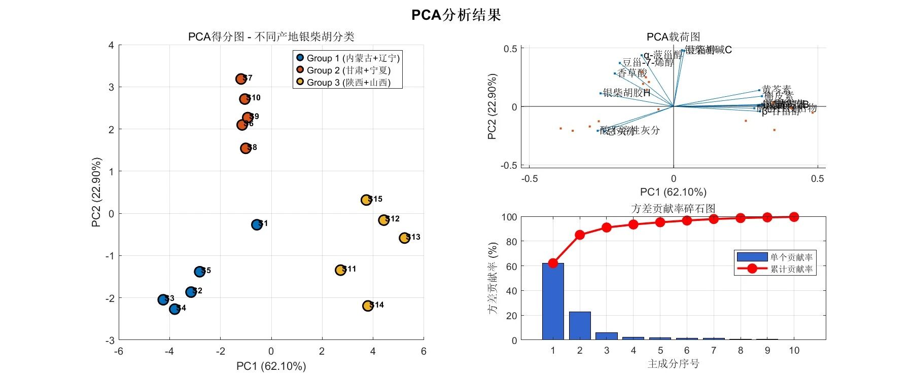 银柴胡质量评价分析 -PCA、OPLS-DA及CRITIC-TOPSIS分析方法附Matlab代码