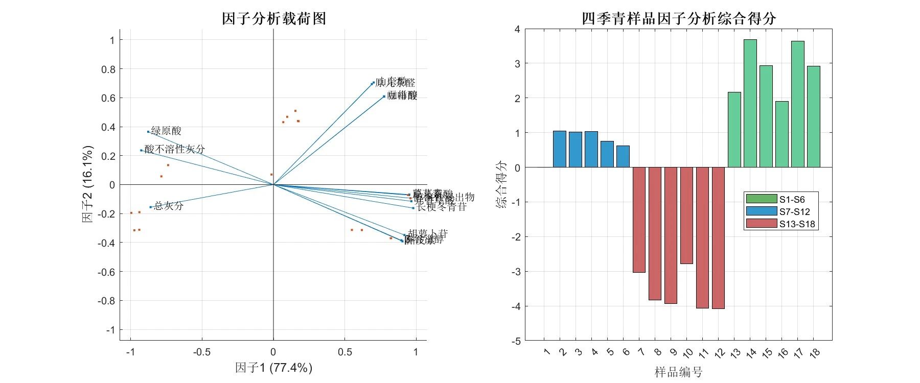 • 通过 PCA/FA 挖掘成分关联并提取核心质量因子,减少评价维度冗余;