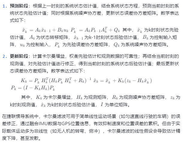 卡尔曼滤波的应用基于两个核心假设:一是系统模型和观测模型均为线性;二是系统噪声和观测噪声均服从高斯分布。其算法流程主要分为两步:
