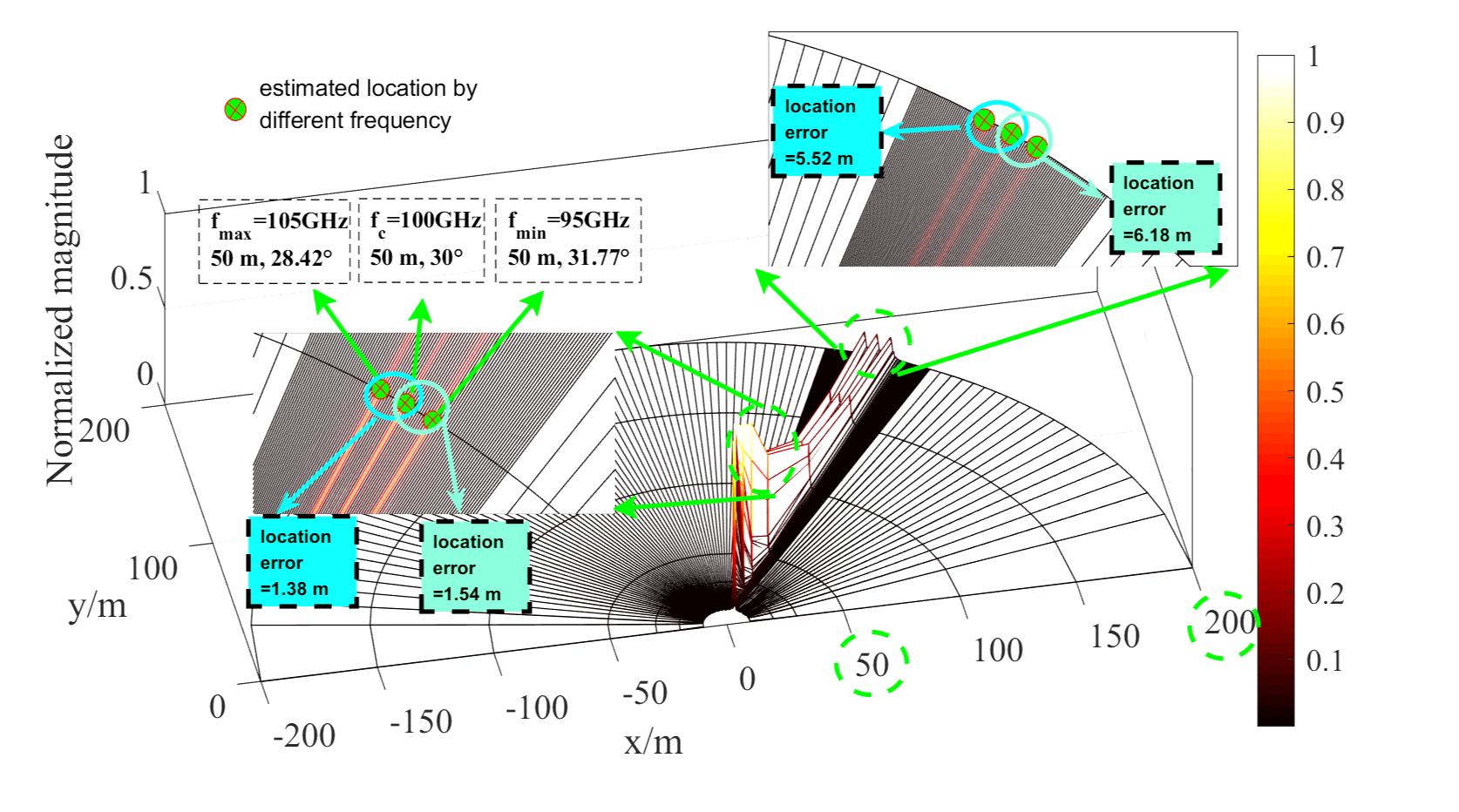 (2)定位误差累积:传统THz定位依赖波束指向角度与传播时延的联合估计,斜视效应会导致波束指向偏差,使得AoA/AoD估计误差增大;同时,斜视场景下RLoS路径的时延估计受波束传播路径偏移影响,进一步加剧定位误差累积,严重时会导致定位精度下降50%以上。