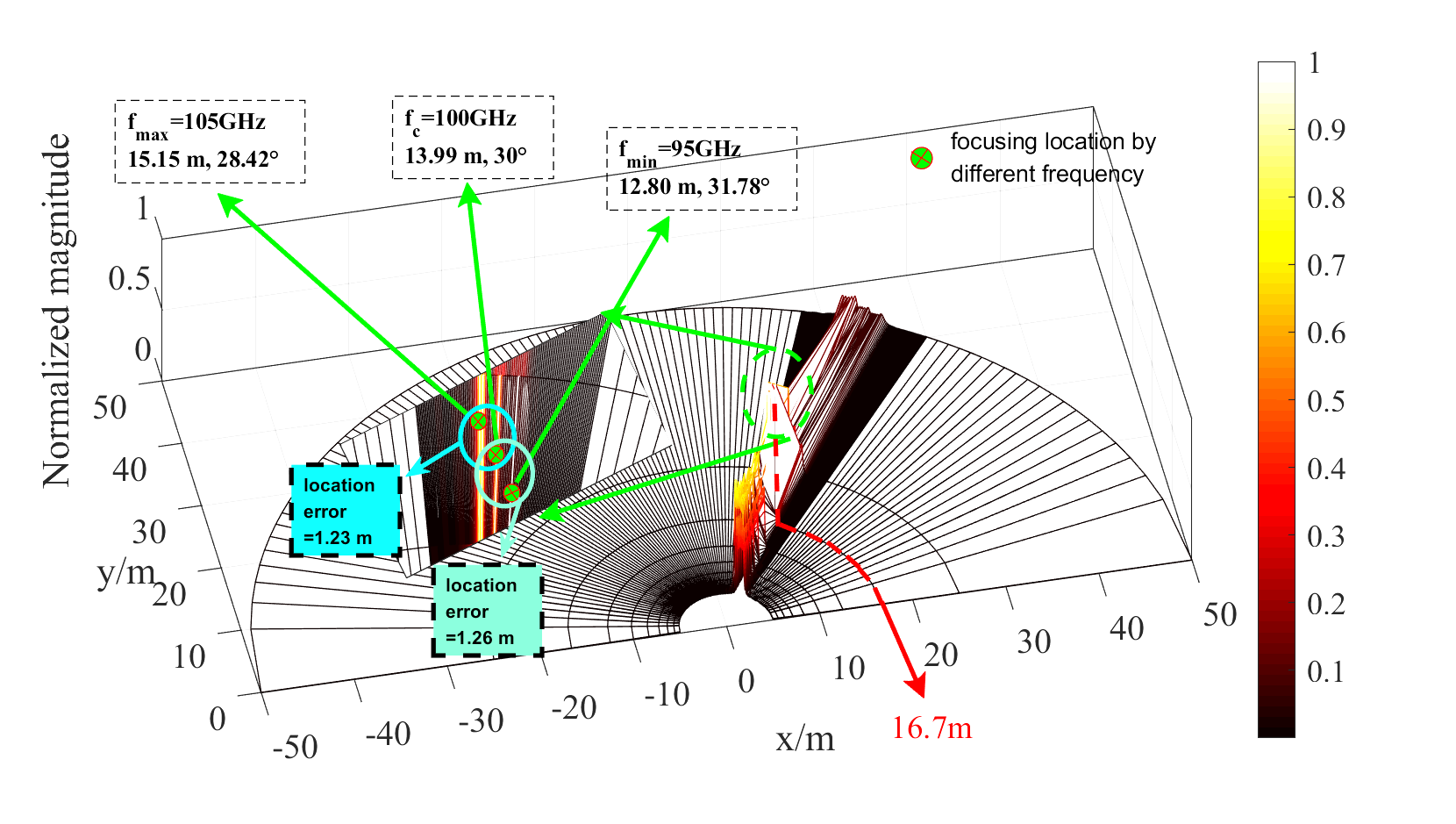 (1)波束赋形调控:RIS通过优化各单元反射相位φₙₘ,可将基站发射的THz波束聚焦于目标用户方向,补偿斜视效应导致的波束偏移与路径损耗;针对混合场斜视场景,可通过相位加权形成定向反射波束,抵消斜视角θ的影响,提升RLoS路径增益。
