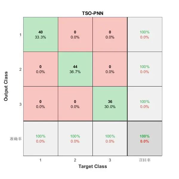 相较于其他优化方案(如PSO-PNN、GA-PNN),TSO-PNN的优势在于:TSO的螺旋觅食与围捕攻击机制能更好地平衡全局搜索与局部搜索,在提升寻优精度的同时加快收敛速度;同时,TSO对初始参数不敏感,鲁棒性更强,能适配物流场景中货物特征的动态变化,确保分类性能的稳定性。