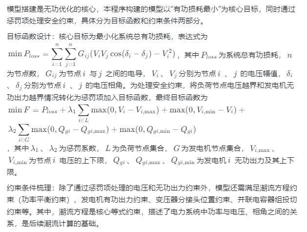 在电力系统运行过程中,无功功率的合理分配直接关系到电网的经济性能、电压质量和运行稳定性。随着电力系统规模不断扩大、负荷类型日趋复杂,无功优化已成为电网调度与规划领域的核心研究课题之一。其核心目标是通过优化无功电源的配置和调节,在保证系统安全运行的前提下,最大限度降低有功损耗,提升电压合格率。